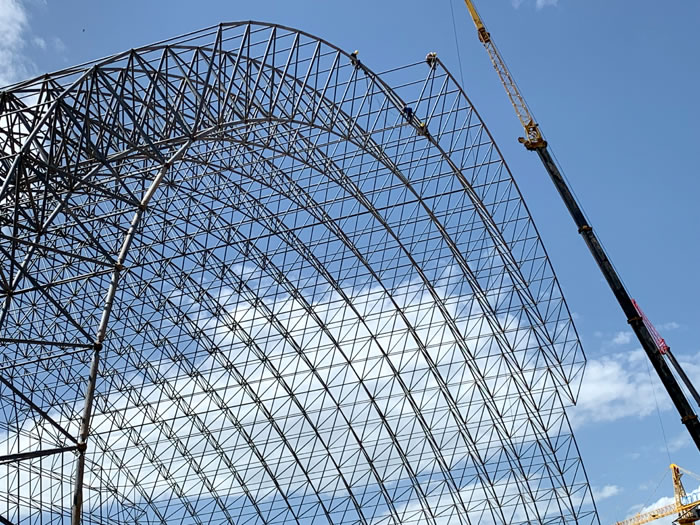 (2)网架加工前应对现场尺寸进行复测,确认无误后方可进行加工、安装;网架制作、运输、安装应遵守《空间网格结构技术规程》JGJ7-2010、《钢网架南康螺栓球节点》JG/T 10-2009、《钢网架南康螺栓球节点用高强度螺栓》 GB/T 16939-2016、《南康钢结构南康工程南康施工规范》 GB50755-2012、《南康钢结构南康工程施工质量验收标准》 GB50205-2020。
